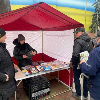 Кожен охочий міг отримати в подарунок Новий Заповіт від Українського Біблійного Товариства та долучитися до збору коштів на придбання тактичних аптечок для Сил оборони України.