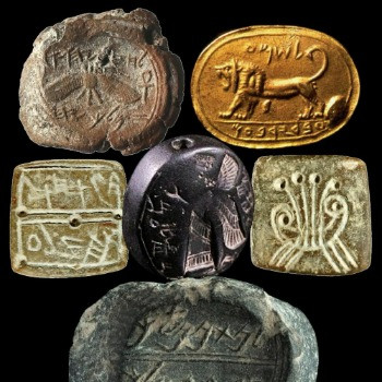 2 Колекція написів, печаток та відбитків печаток з іменами, що датуються біблійними царствами Юдеї та Ізраїлю Залізної доби: булли царя Єзекії з Єрусалима, репродукція «левової печатки» з Меґіддо, квадратна печатка з Бет-Шемешу та чорна кам'яна печатка. Фото Barak Sober / Benjamin Sass / Michael Magen / Ouria Tadmor / Courtesy of the Hebrew University of Jerusalem / Eliyahu Yanai / Courtesy of the City of David archive. Джерело: https://www.haaretz.com/archaeology/2025-05-12/ty-article-magazine/names-reveal-unseen-history-of-biblical-kingdoms-of-israel-and-judah-researchers-say/00000196-bf48-dbb0-af9f-bfda96d50000